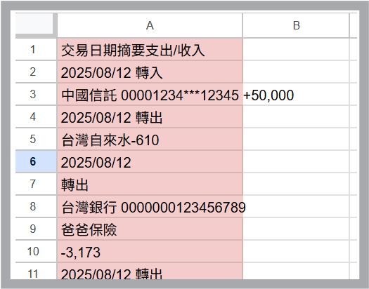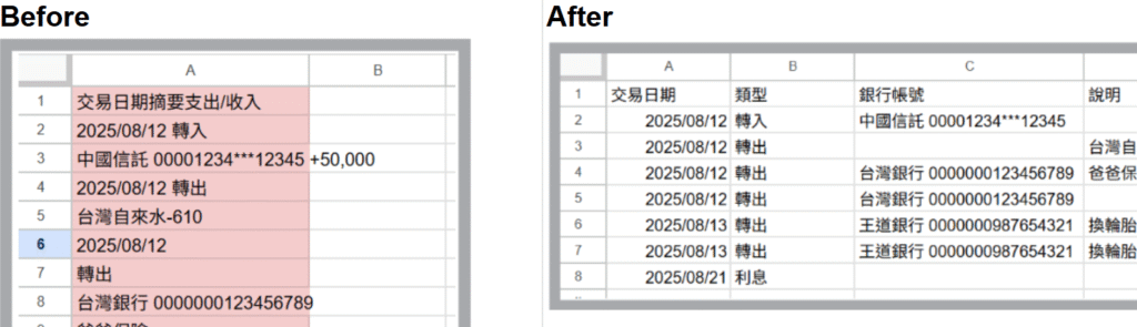這個步驟(重整交易明細為整齊的表格數據)是整個流程中我最大的痛點
