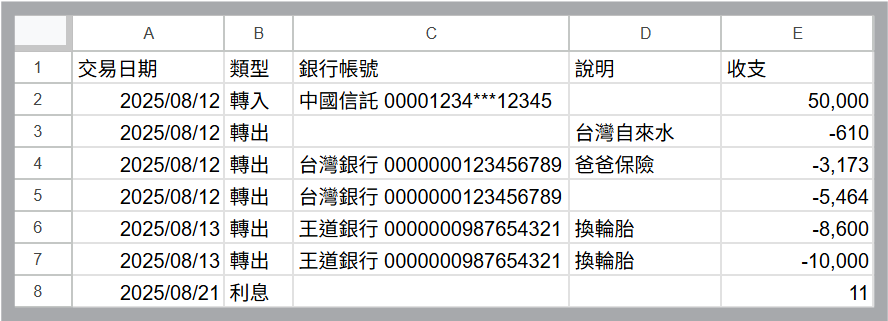 只要同一銀行對帳單格式不變,這個流程就能持續使用